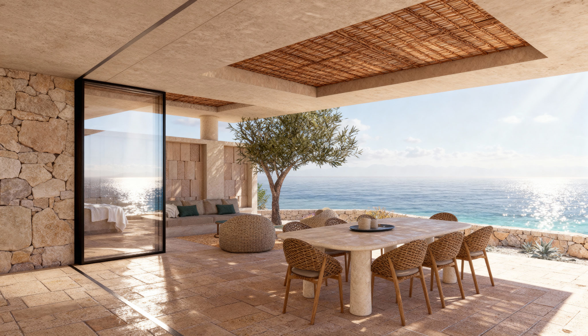 This approach allows for the architecture to feel rooted, as well as offer a luxurious sense of openness accompanied by unobstructed sea views.